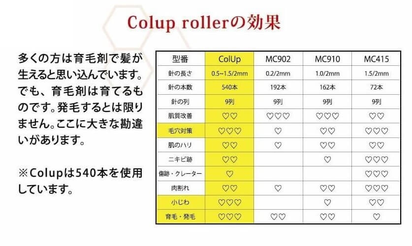 金属アレルギーの方も安心です。リスクが少ないのも特徴。また、540個の針を保有し、皮膚内部でより多く細胞分裂及び再生することが可能です。
