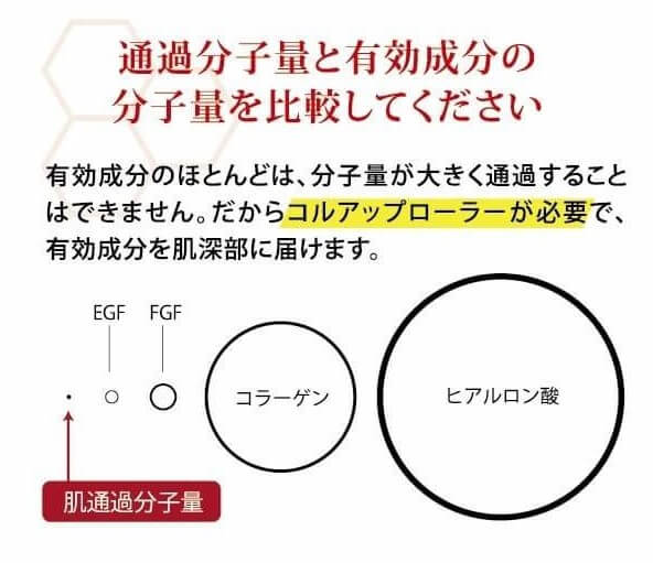 肌によいといわれている、コラーゲンやヒアルロン酸の成分は大きく肌に浸透しにくいといわれています。